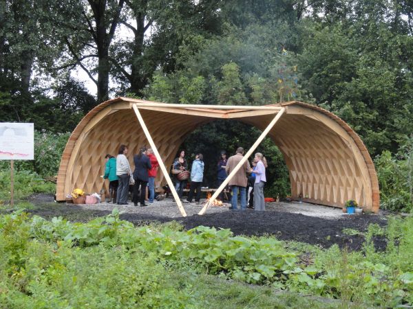 Feuerlaube in Lamellenkonstruktion im Rahmen der Bauepoche der Rudolf-Steiner-Schule Gröbenzell