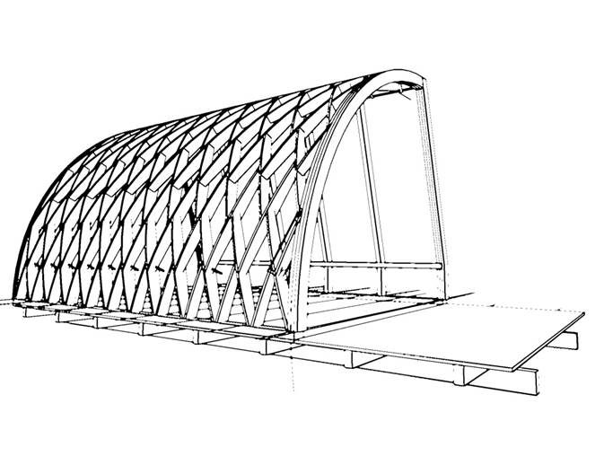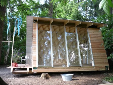 Gartenhaus in Lamellenkonstruktion im Rahmen der Bauepoche der Rudolf-Steiner-Schule Gröbenzell